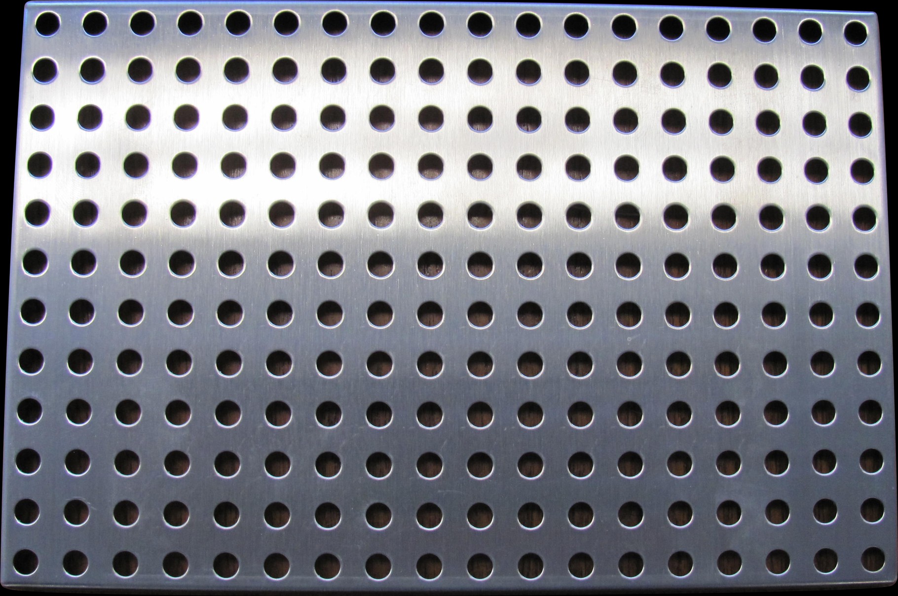 Typical depth is 3/8" with welded and dressed corners. Tell us what size and shape you want to start with, then choose between larger or smaller hole diameters and the type of hole pattern you want in order to customize them just the way you want. You can also choose different hole shapes…. round, square, or triangle.