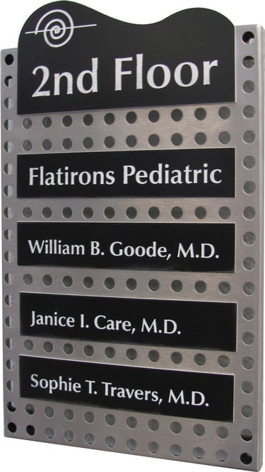 Fabricated #4 Stainless Steel signage platforms can be combined with many different sign substrates in multiple colors and textures to create a unique look for that "high end" customer looking to you to provide just the right concept for their way finding signage needs.